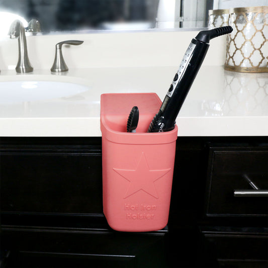 Hot Iron Holster | Coral | Adhesive-Free Silicone Storage Pocket for Organization and Travel | Heat Resistant to 500°F | Ideal for Curling Irons, Hair Straighteners, and Other Hot Tools